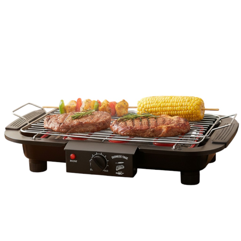 Disfruta de la barbacoa en casa con nuestra parrilla eléctrica. Compacta y potente, te permite cocinar carnes y vegetales a la perfección con facilidad.